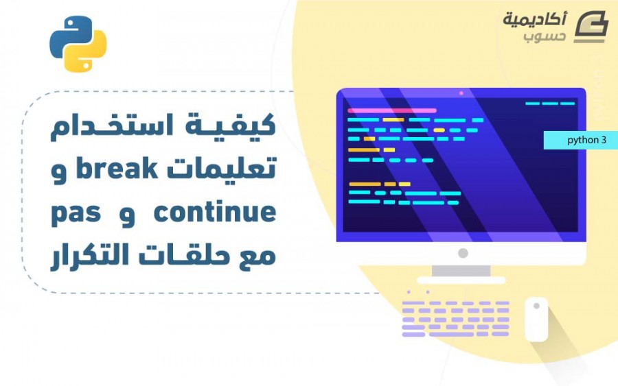 Based on this image's title: “جملة الاستمرار في الجمل الشرطية في بايثون أو بيثون Python continue ...”