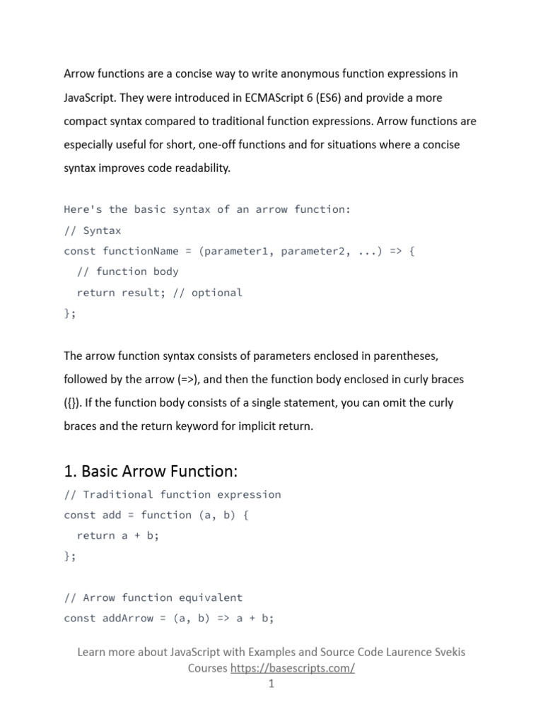Arrow Functions Learn JavaScript Ready | PDF | Anonymous Function ...
