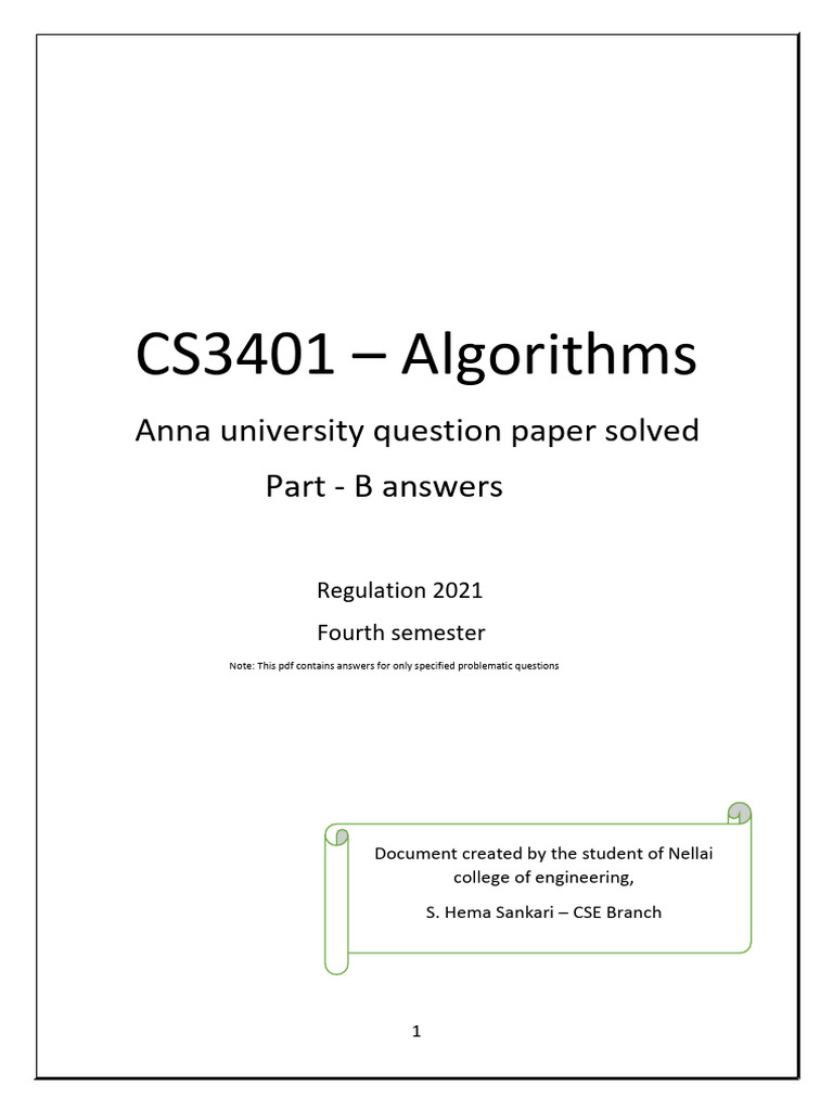 CS3401 - Algorithm Solved Answers For University Questions. | PDF ...