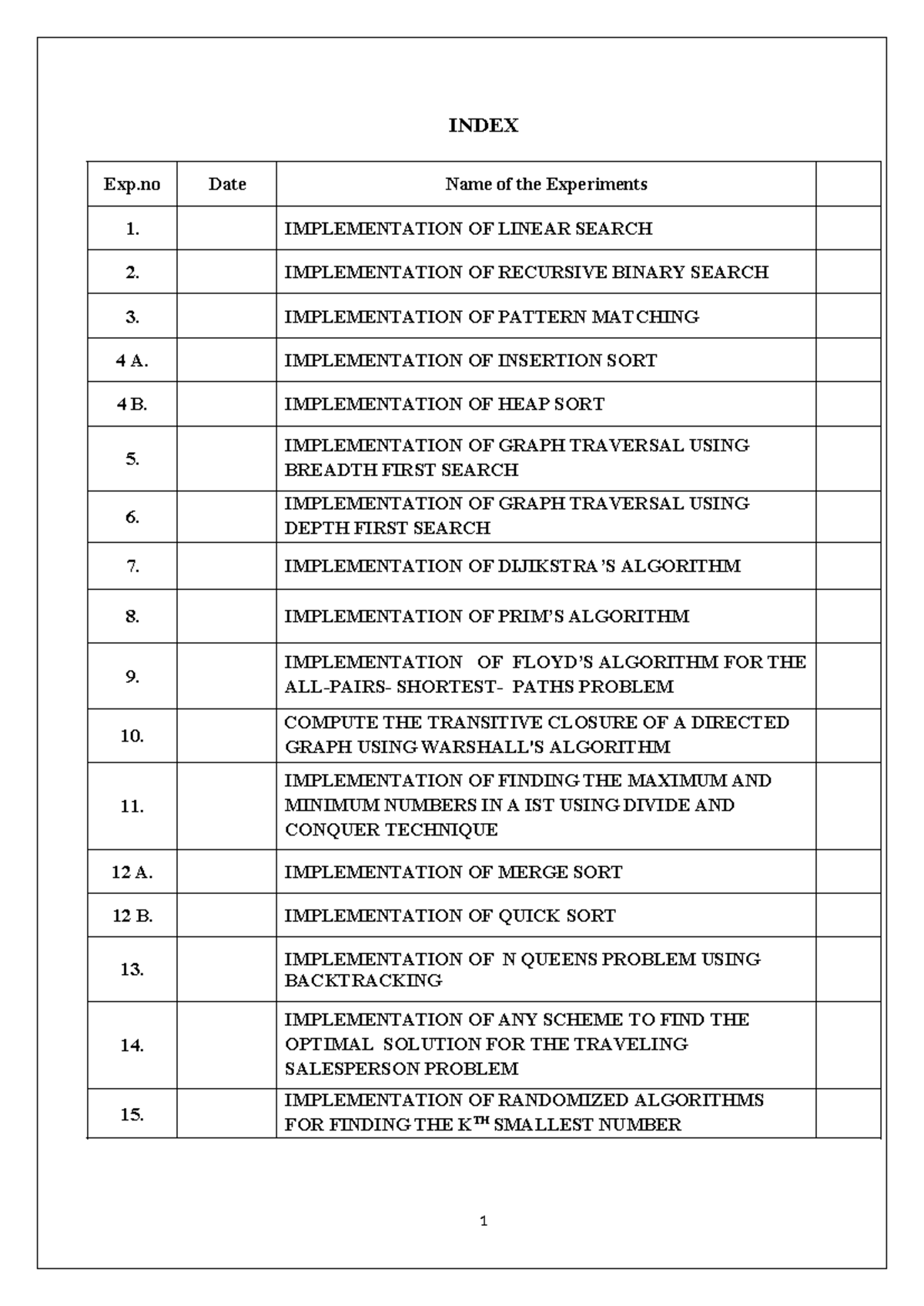 CS3401 Algorithms Laboratory Lab Manual - Experiments and ...