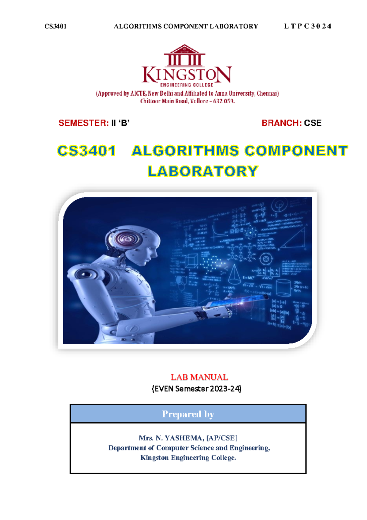 CS3401 - Updated Algorithms LAB Manual for Even Sem 2023-24 - Studocu