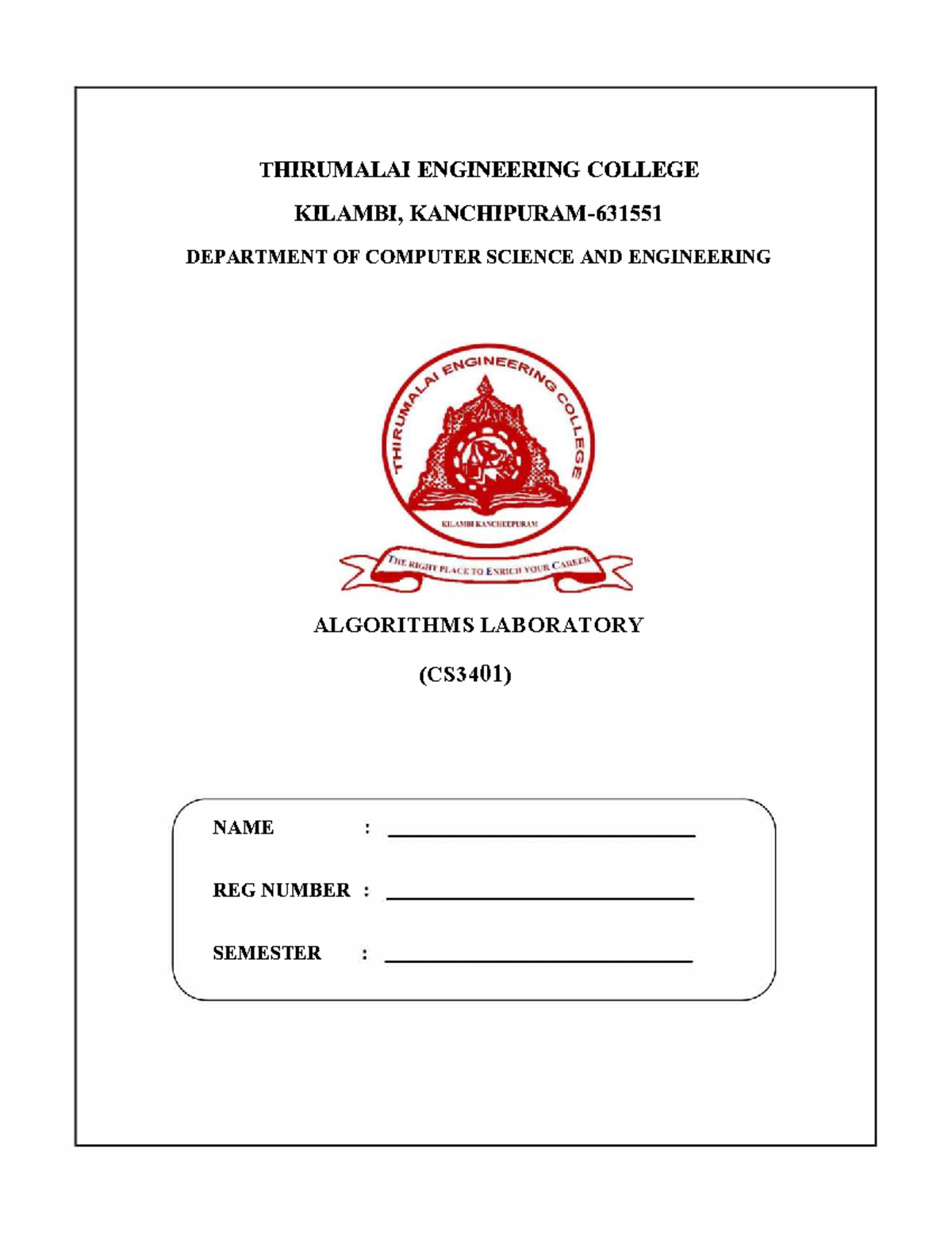 CS3401 Algorithms LAB Manual - GKM COLLEGE OF ENGINEERING & TECHNOLOGY ...