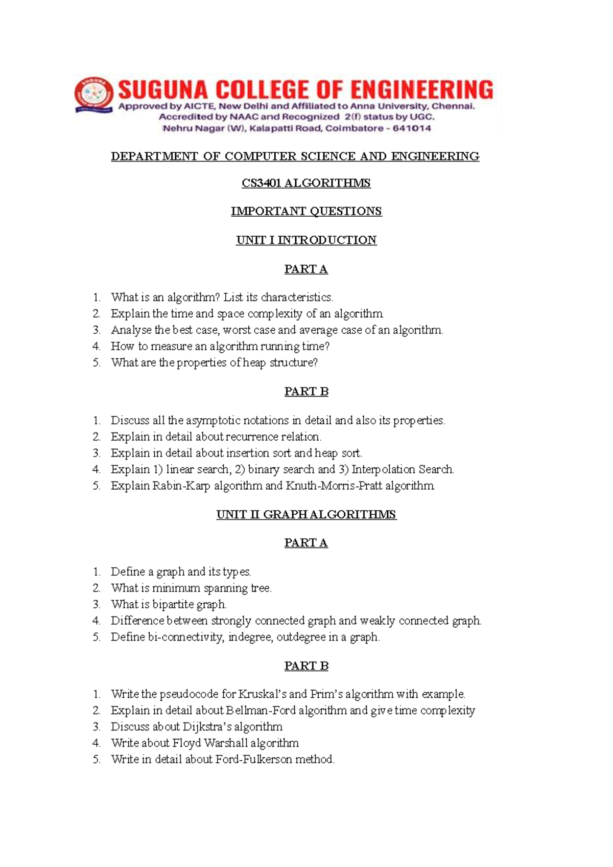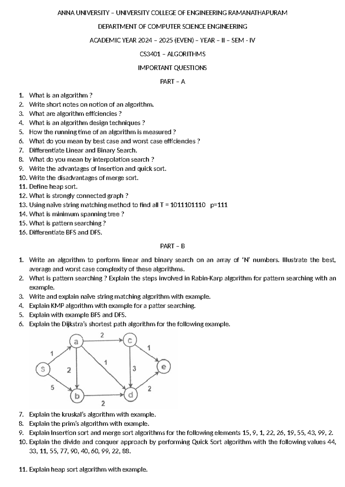 CS3401 Algorithms Important Questions for Year II Sem IV (2024-2025 ...