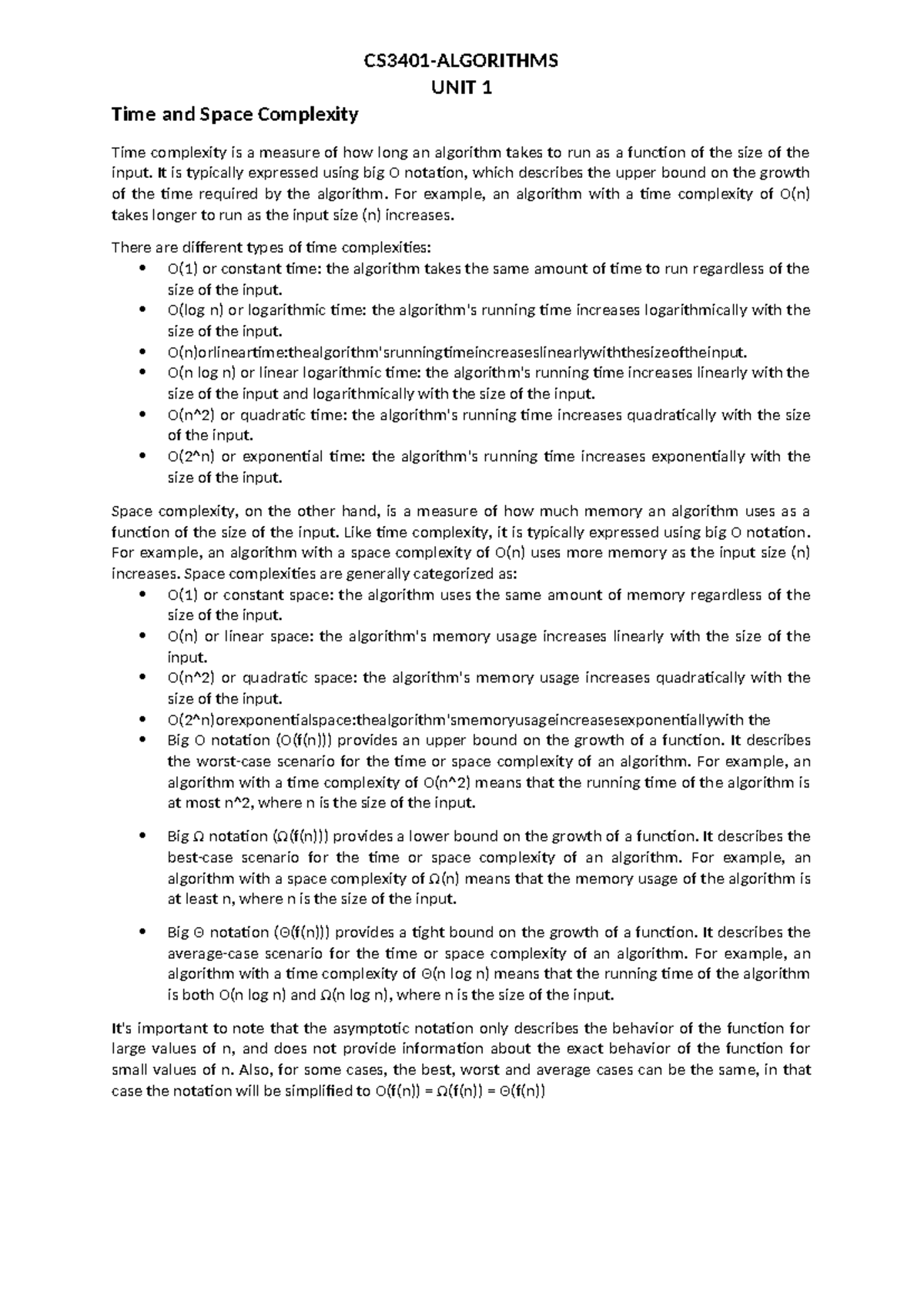 UNIT 1 Notes Algorithm - CS3401-ALGORITHMS UNIT 1 Time and Space ...