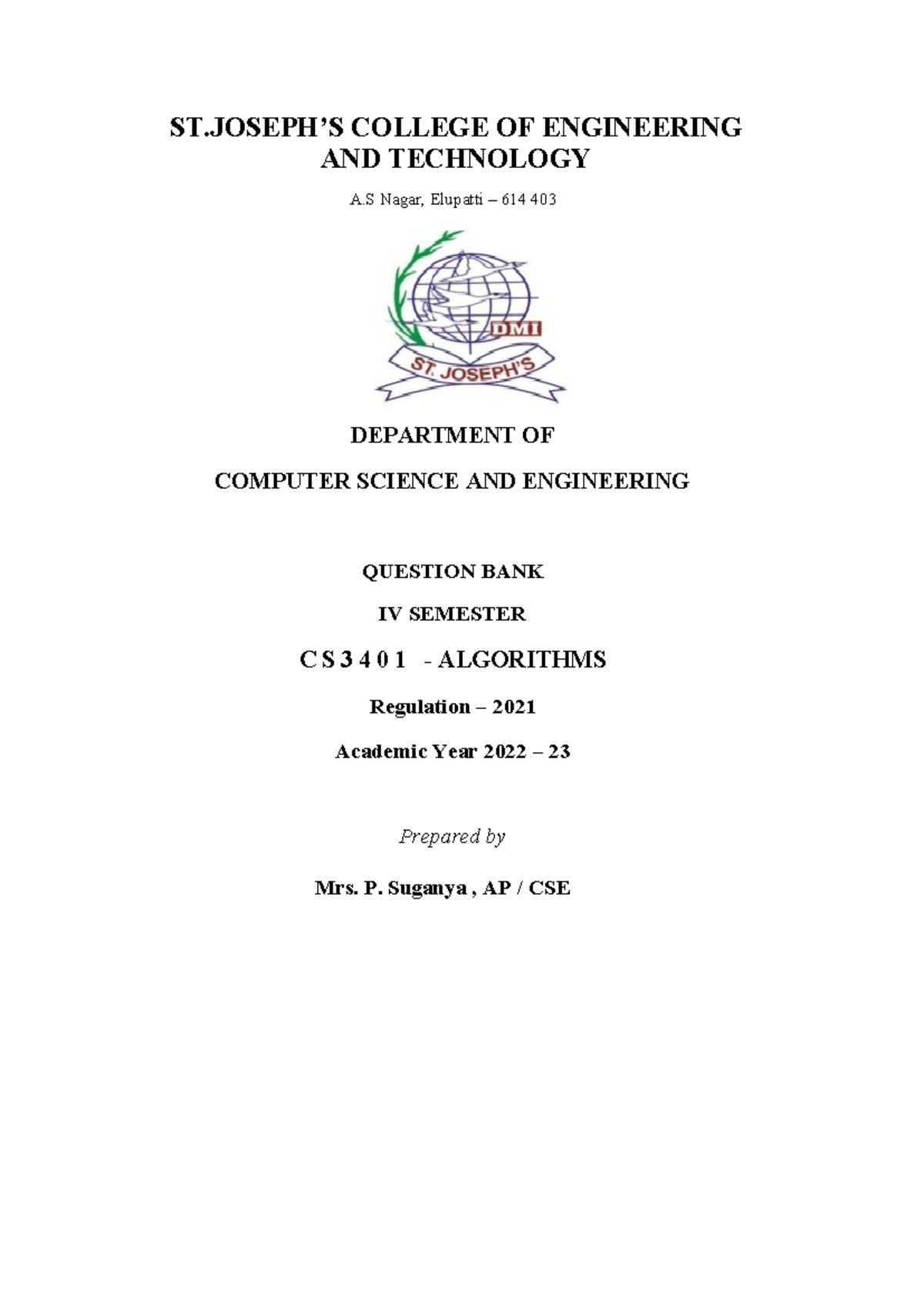 Cs3401 - Question Bank for Algorithms: IV Semester CSE - Studocu
