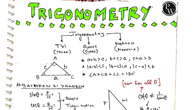 TRIGONOMETRY PW P: Comprehensive Handwritten Notes on Trigonometric ...