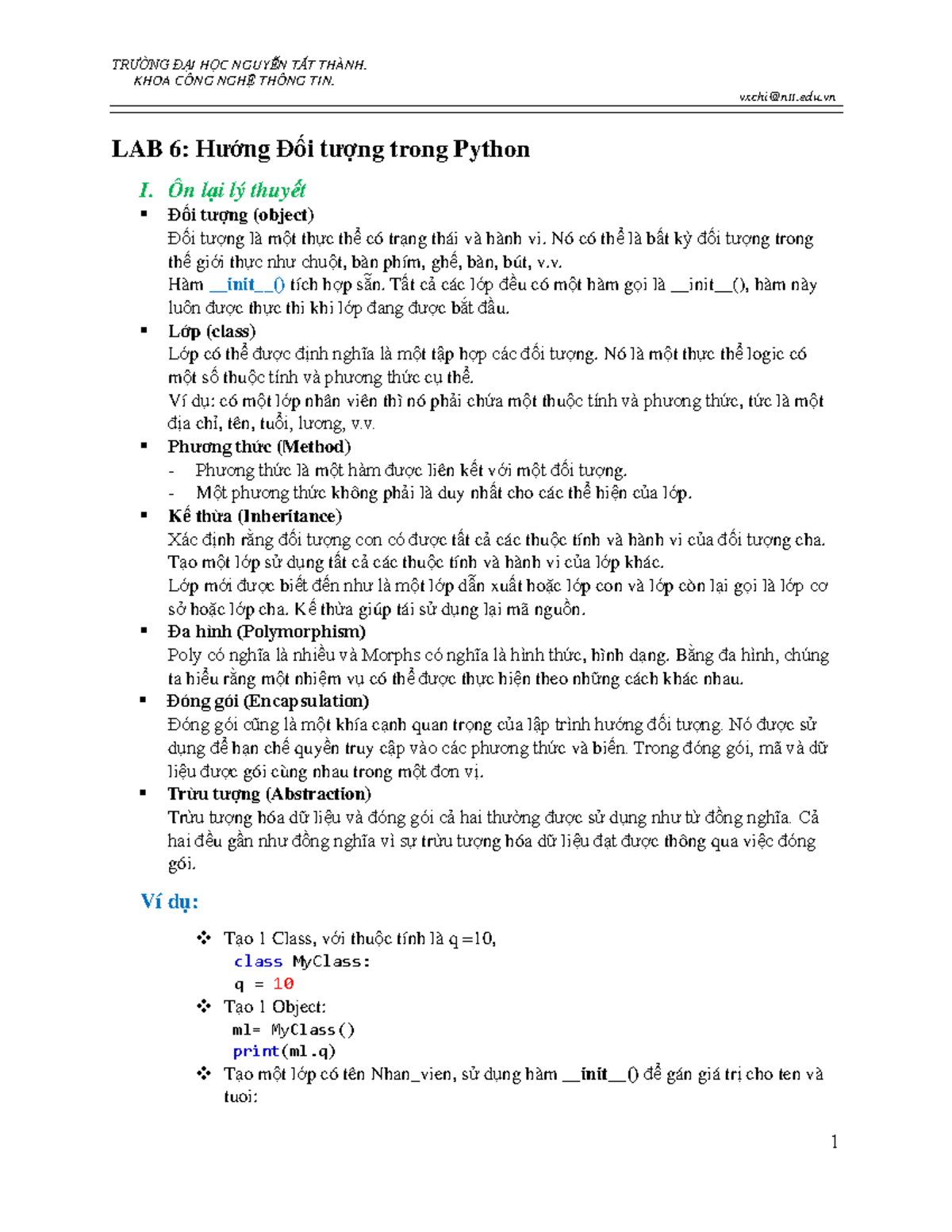 LAB 6: Hướng Đối Tượng Trong Python - Ôn Tập và Thực Hành - Studocu