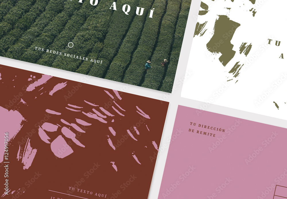 Conjunto de postales en colores llamativos Stock Template | Adobe Stock