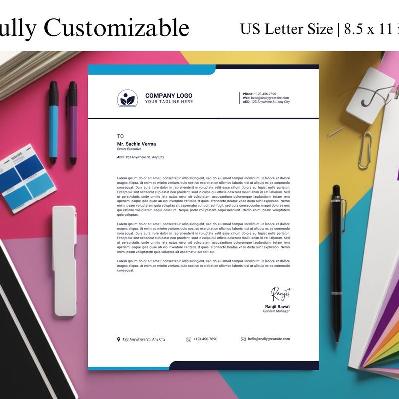 Editable Modern Professional Letterhead Design (.docx Word & PDF)