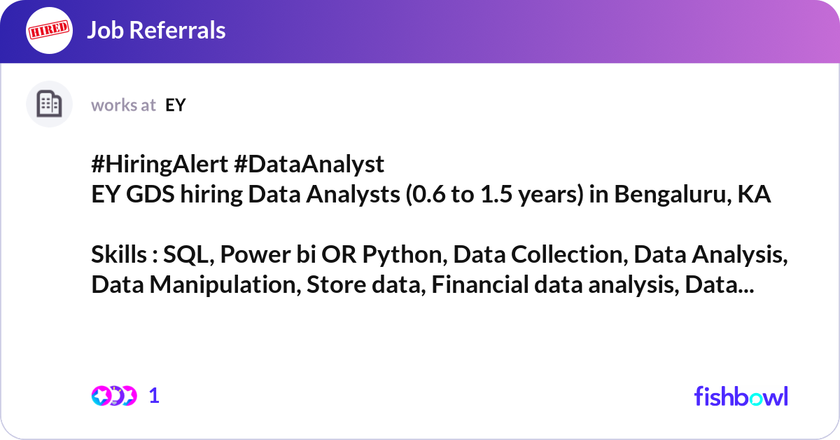 #HiringAlert #DataAnalyst EY GDS hiring Data Anal... | Fishbowl