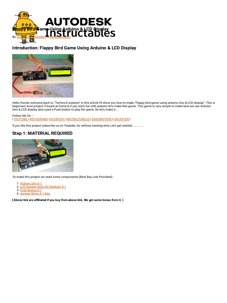 How to Make Flappy Bird Game Using Arduino and LCD Display | Arduino ...