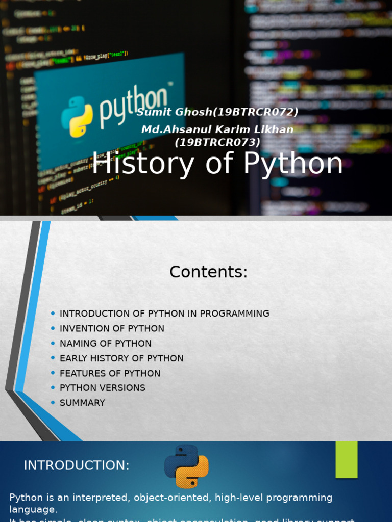 1. Introduction to Python | History of Python | Python use cases - By ...