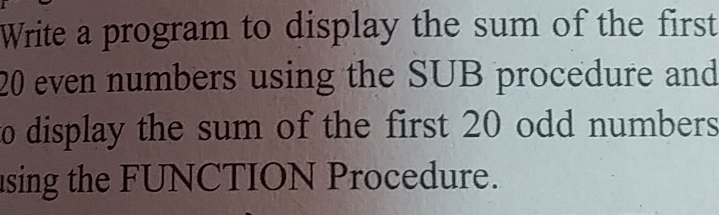SOLVED: Write a program to find the sum of first 10 even numbers in qbasic