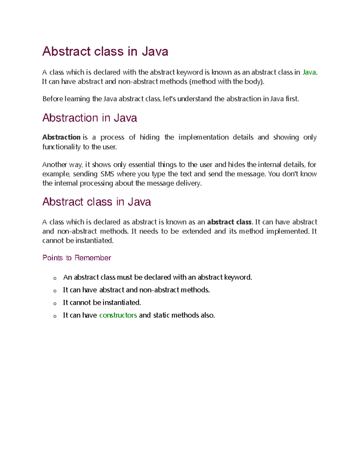 Abstract Class in Java - Javastudypoint