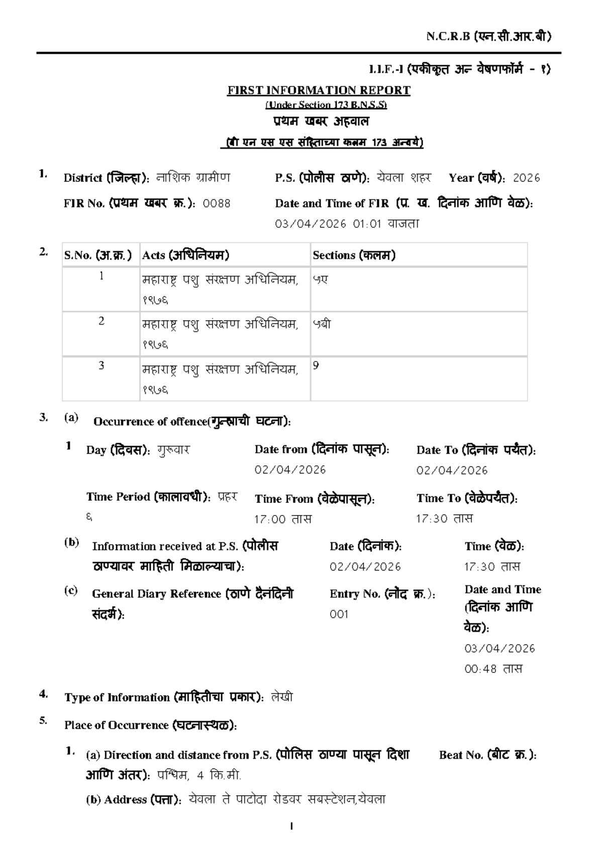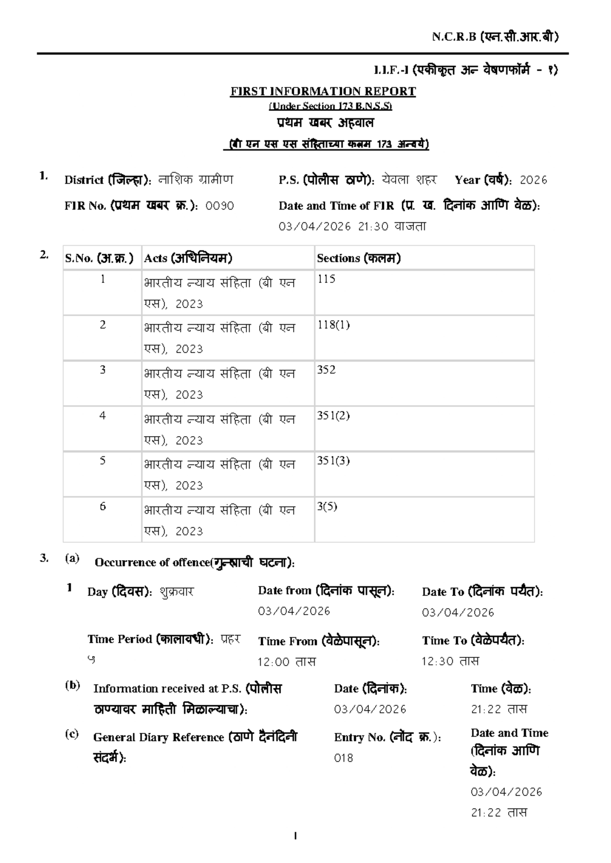 N.C.R.B 0090: First Information Report Details (2026) - Studocu