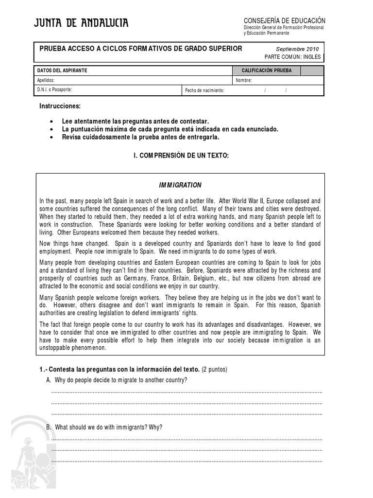 2010 Septiembre Comun Ingles Gs | PDF | Spain | Immigration