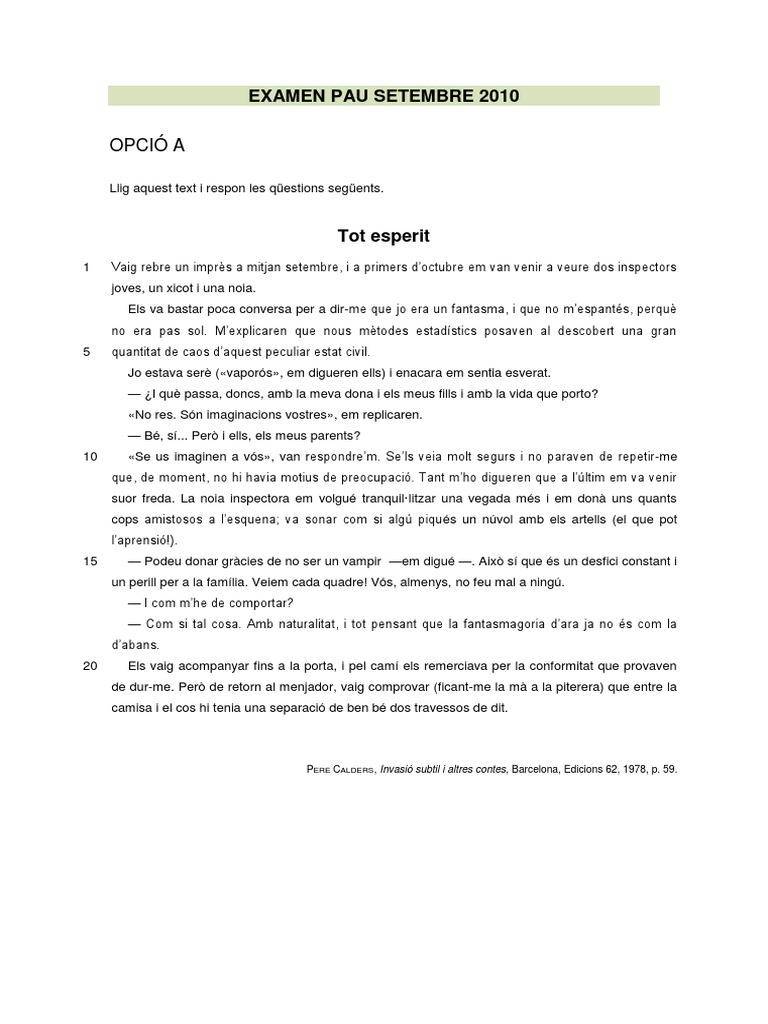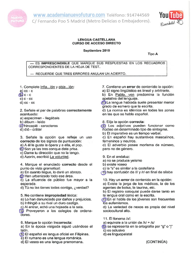 Examen Lengua UNED Mayores 25 Septiembre 2010 Solucion | PDF