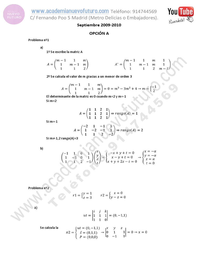 Examen Matematicas II Selectividad Madrid Septiembre 2010 Solucion ...