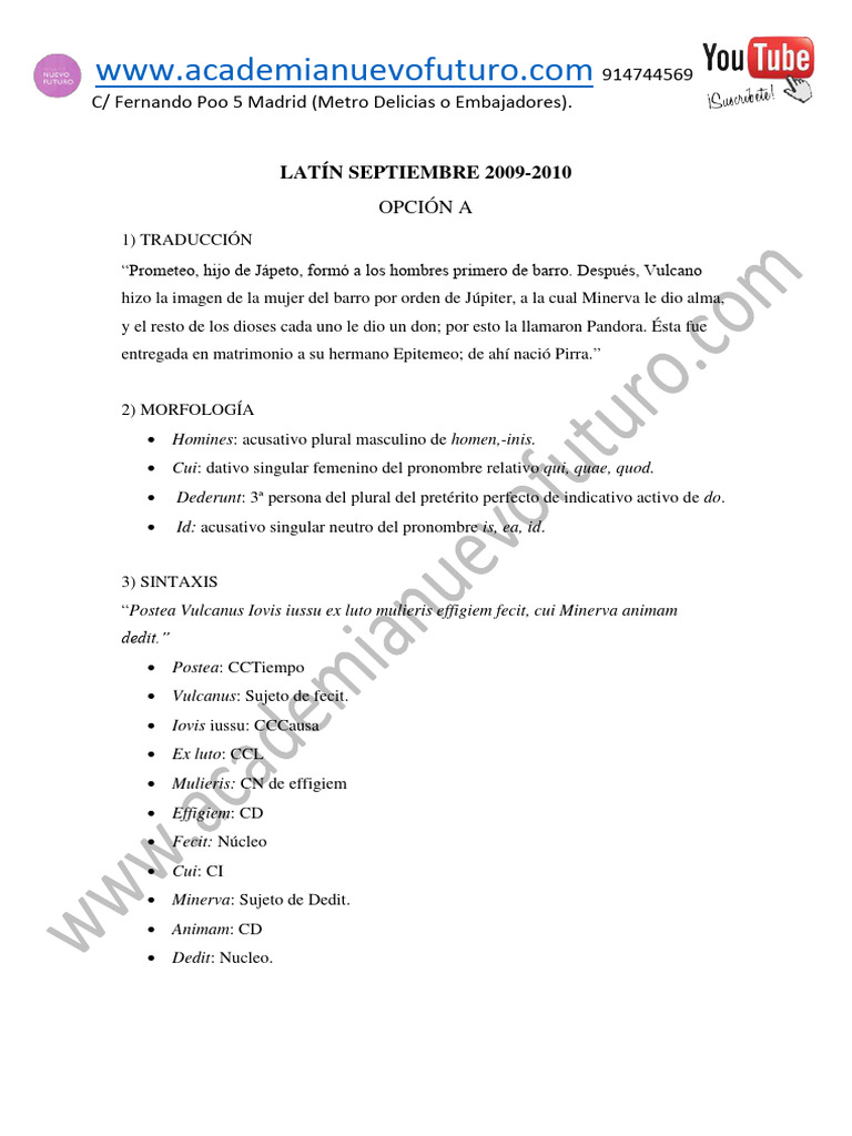 Examen Latin Selectividad Madrid Septiembre 2010 Solucion | PDF | Ovidio