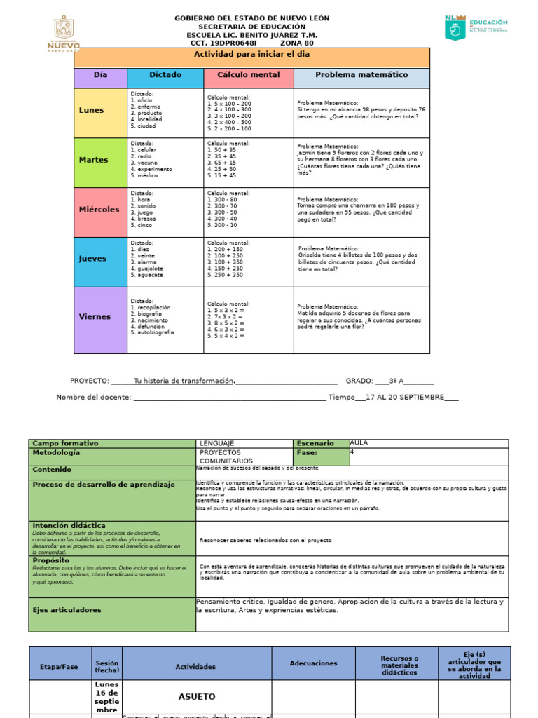 Planeacion Didactica 16 Al 20 de Septiembre 2024 | PDF | México | Los ...