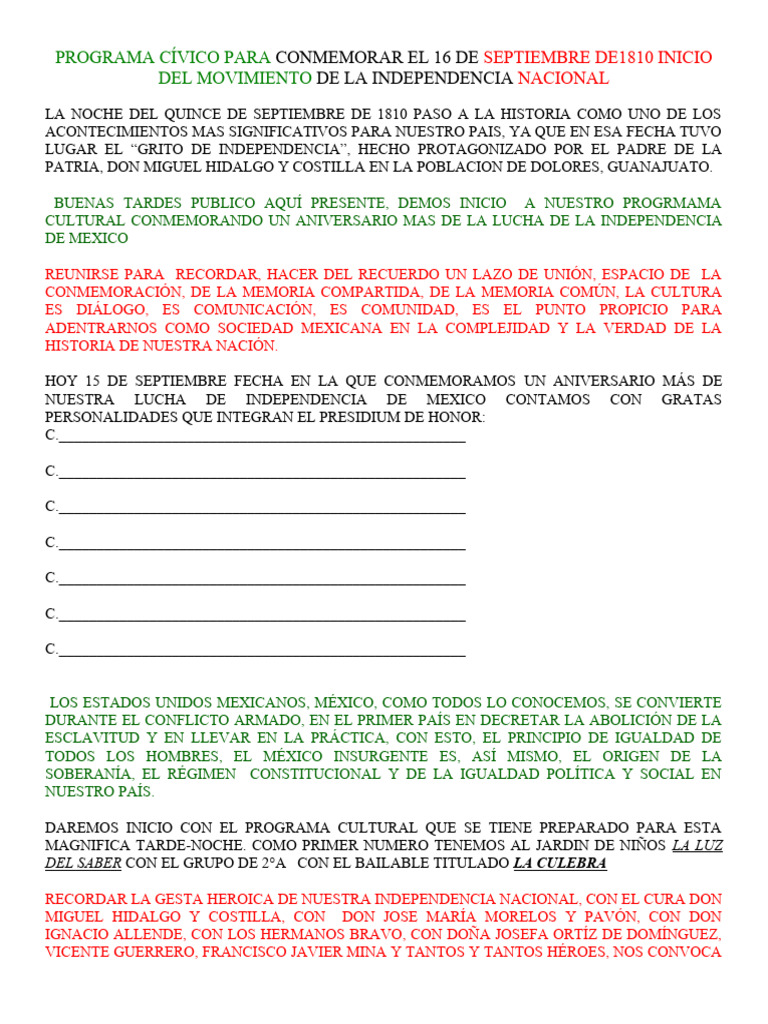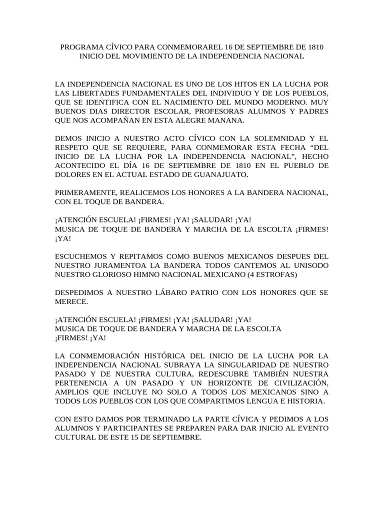 Programa Cívico para Conmemorarel 16 de Septiembre | PDF | México