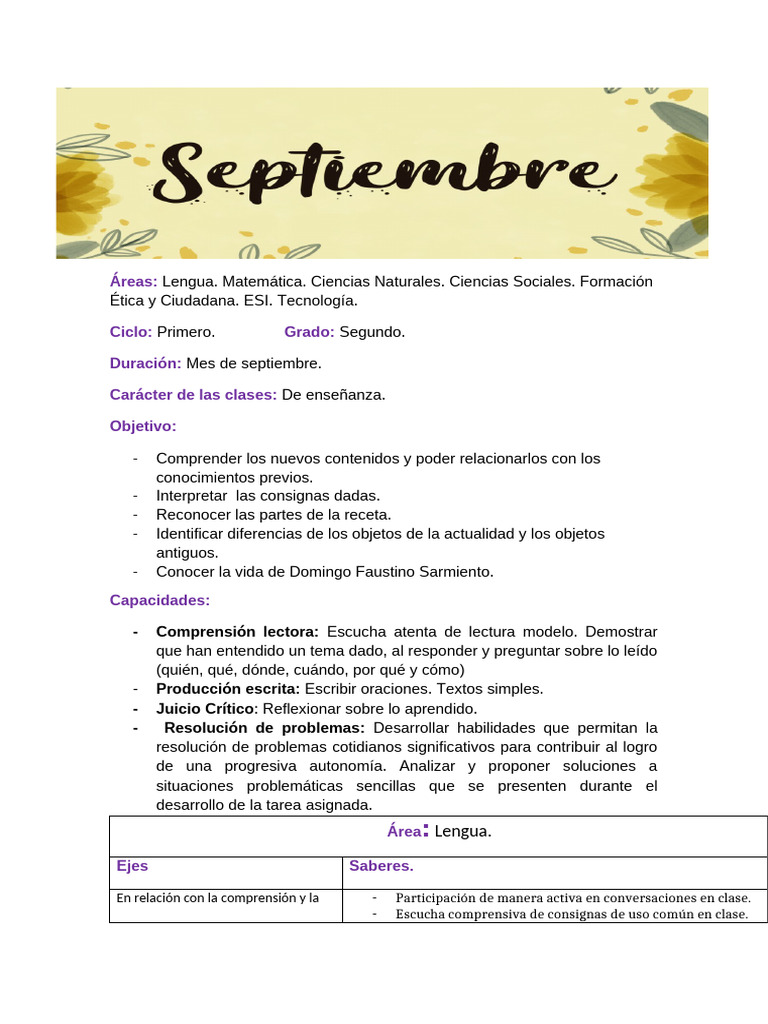 Mes de Septiembre 2 Grado | PDF