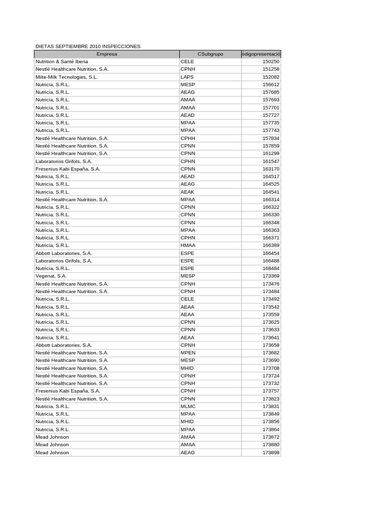 Dietas Inspecciones Septiembre 2010 | PDF | Companies | Infant Feeding