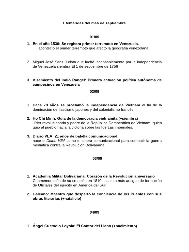 Efemérides Del Mes de Septiembre | PDF | Venezuela | Viajes y turismo