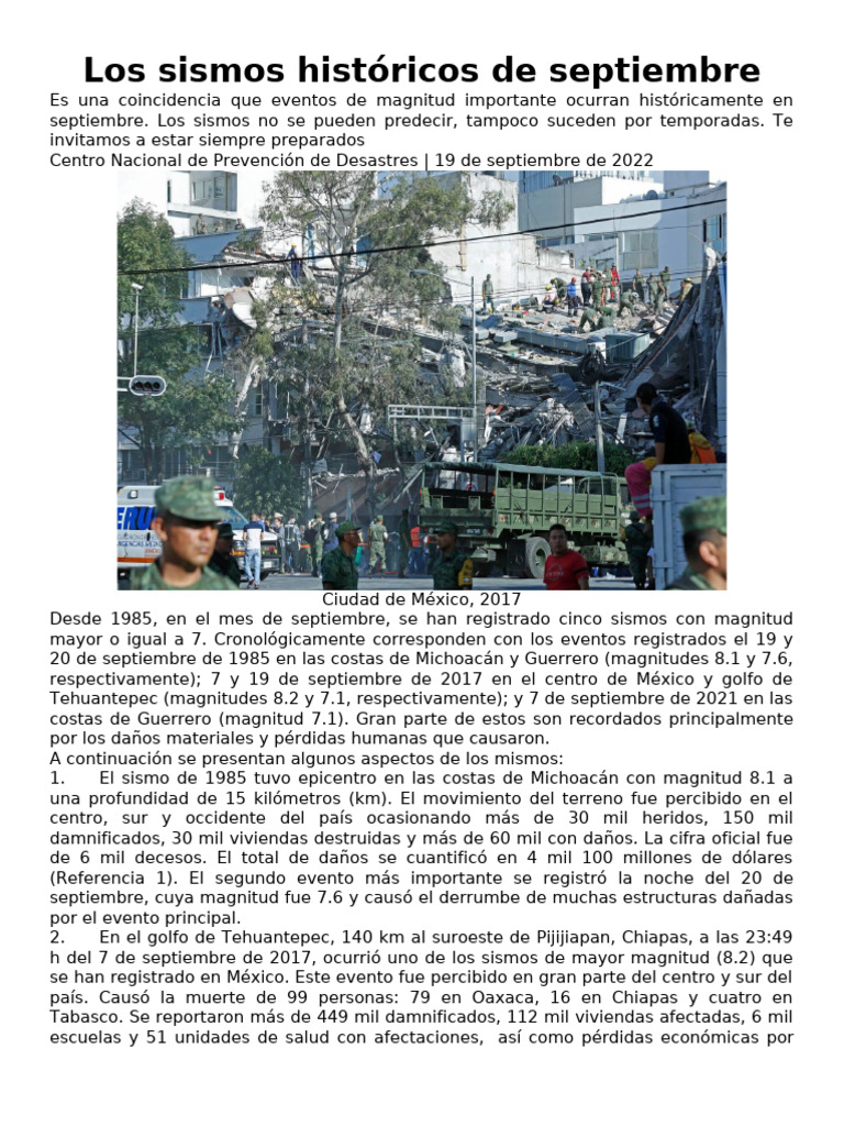 Los Sismos Históricos de Septiembre | PDF | Temblores | México