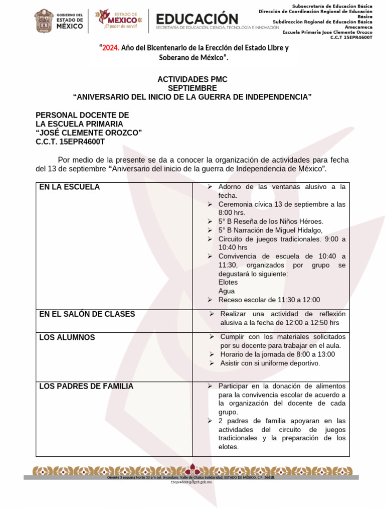Actividades PMC Septiembre | PDF | México | Educación primaria