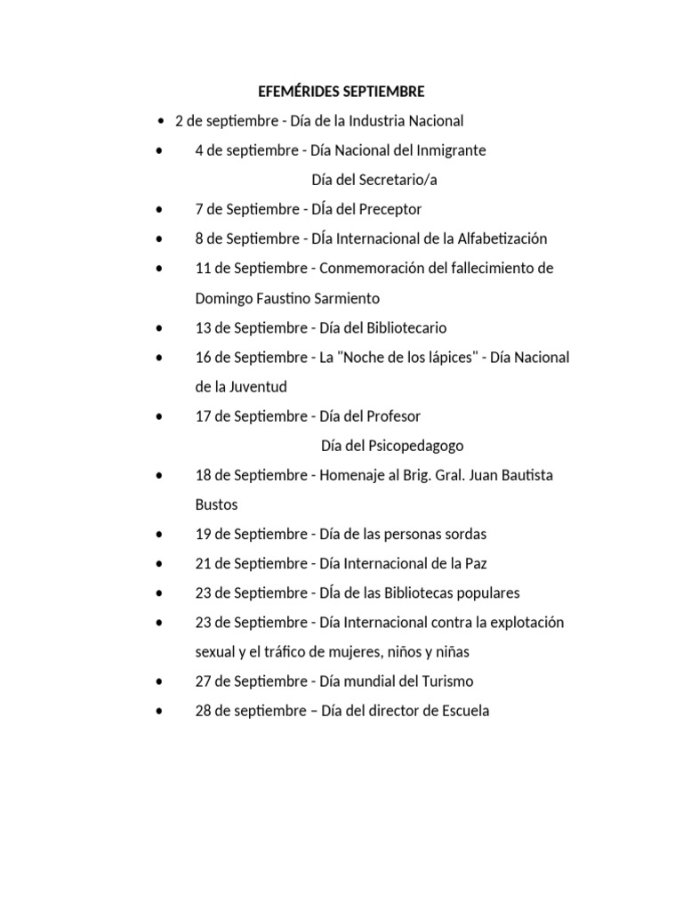 Efemérides de Septiembre | PDF