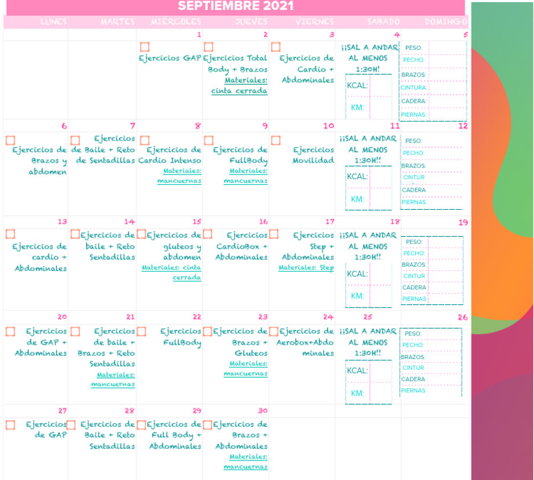 Calendario Septiembre 2021 | PDF | Entrenamiento con pesas