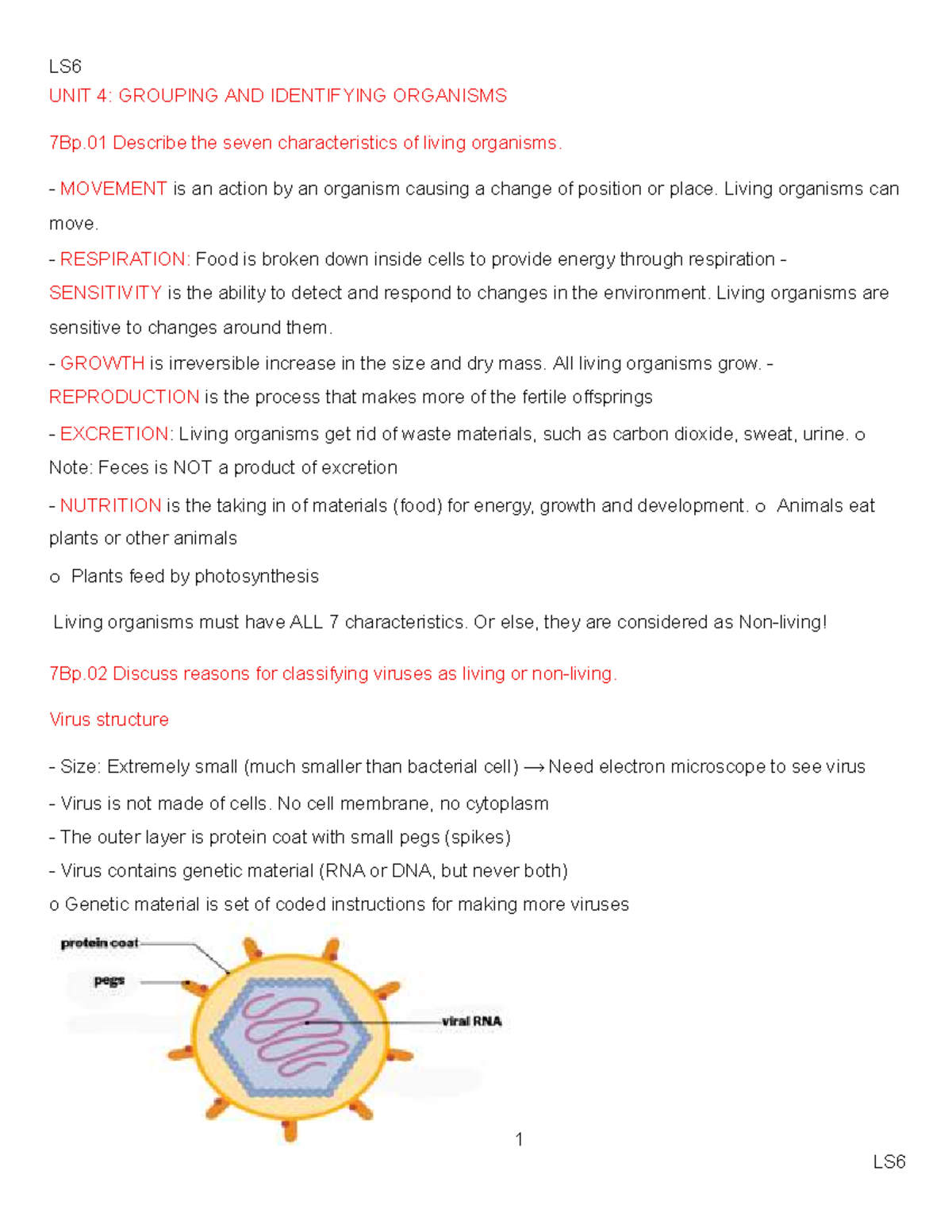 LS6 U4 Summary: Grouping & Identifying Organisms and Viruses - Studocu