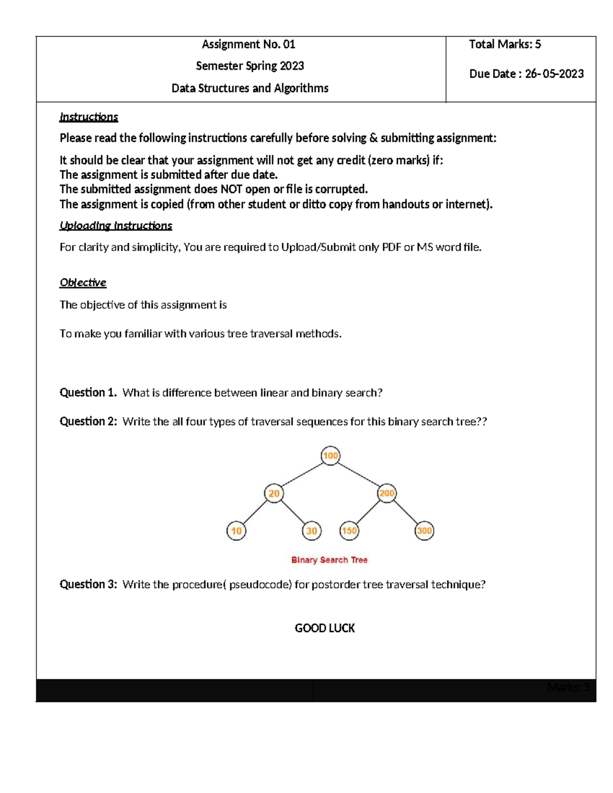 Assignment 01: Tree Traversal Methods - Data Structures (Spring 2023 ...
