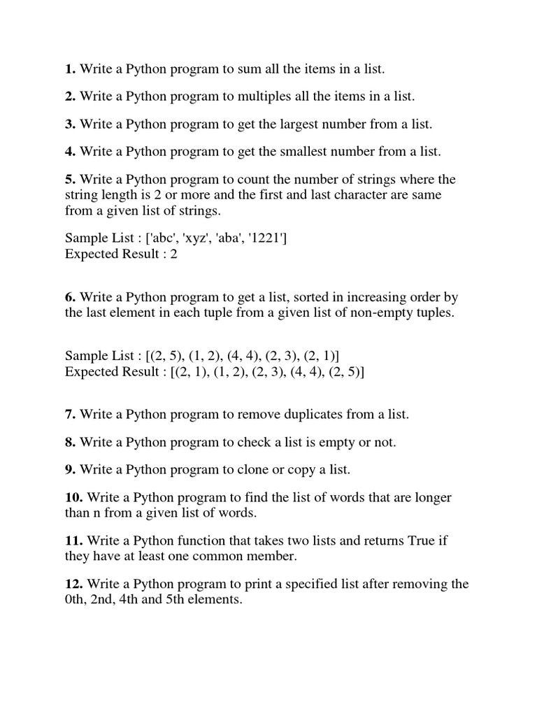 Python Practice Questions | Python Exercise | Python program list-1 ...