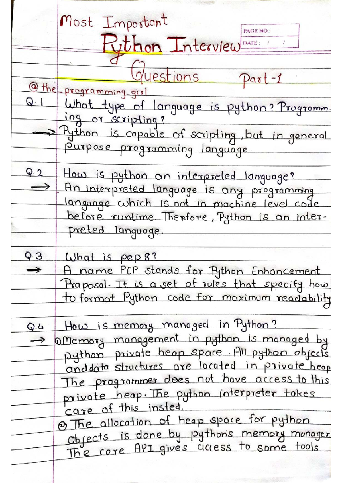 The Full Python Interview Questions and Answers Handwritten | PDF