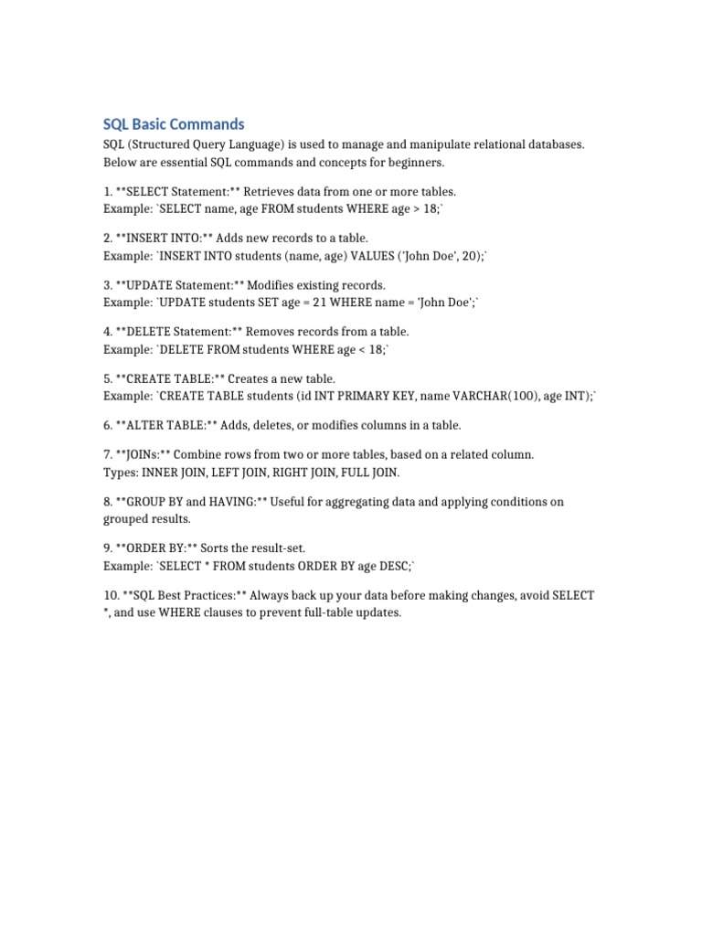 10 SQL Commands You Must Know | PDF