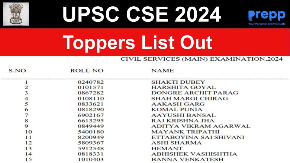UPSC CSE 2024 Topper List Out: Check Top 10 Rank Holders