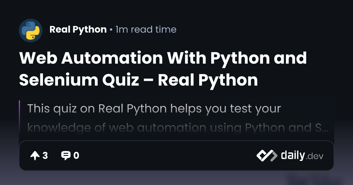 Web Automation With Python and Selenium Quiz – Real Python | daily.dev