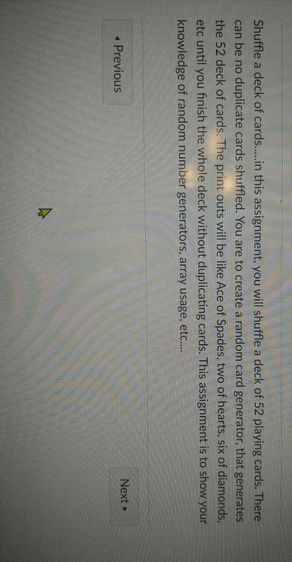Shuffle a deck of cards....in this assignment, you | Chegg.com