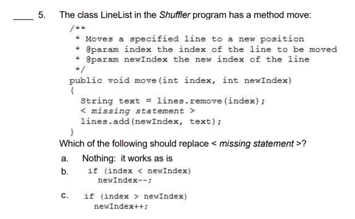 Solved - 5. 5. The class LineList in the Shuffler program | Chegg.com