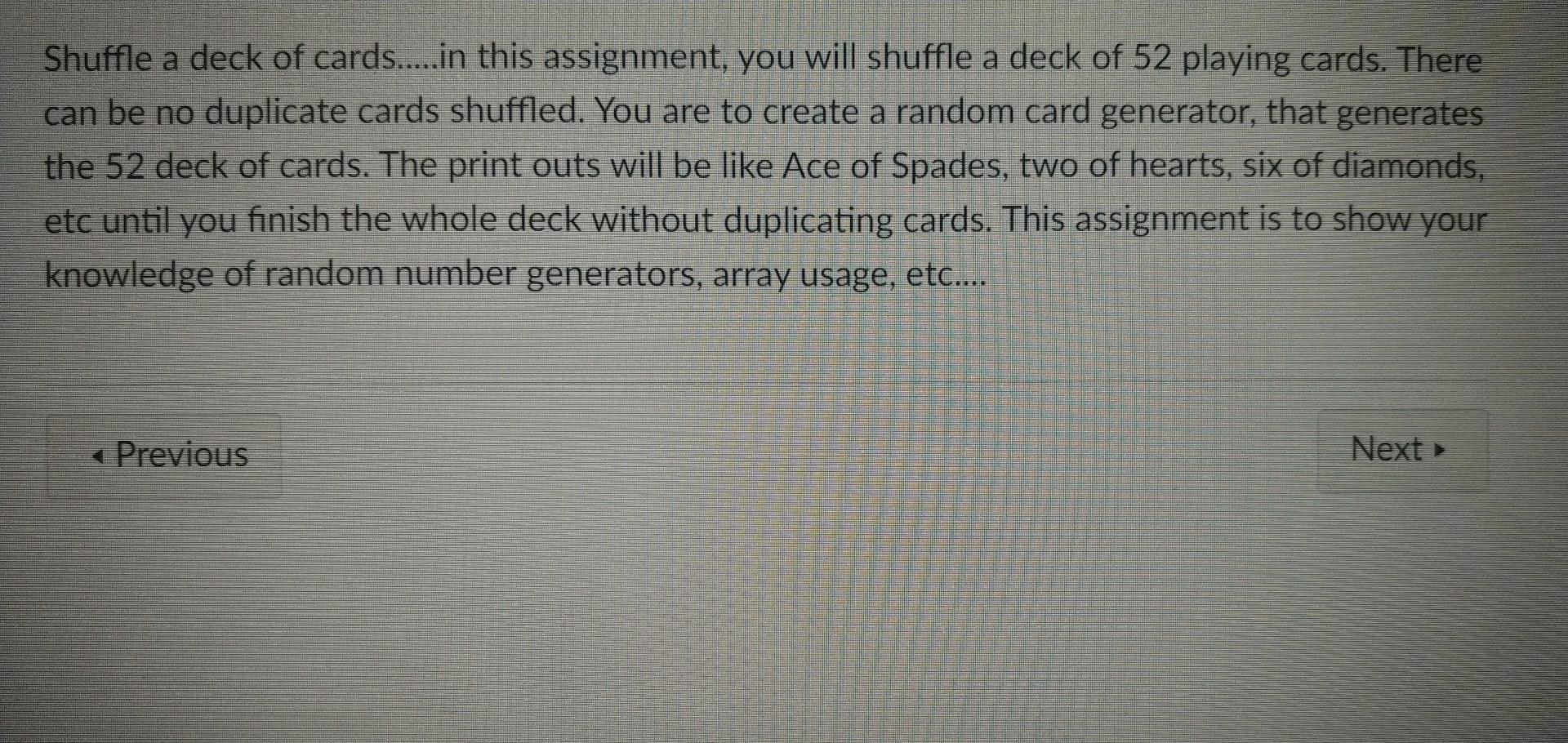 Solved Shuffle a deck of cards.....in this assignment, you | Chegg.com