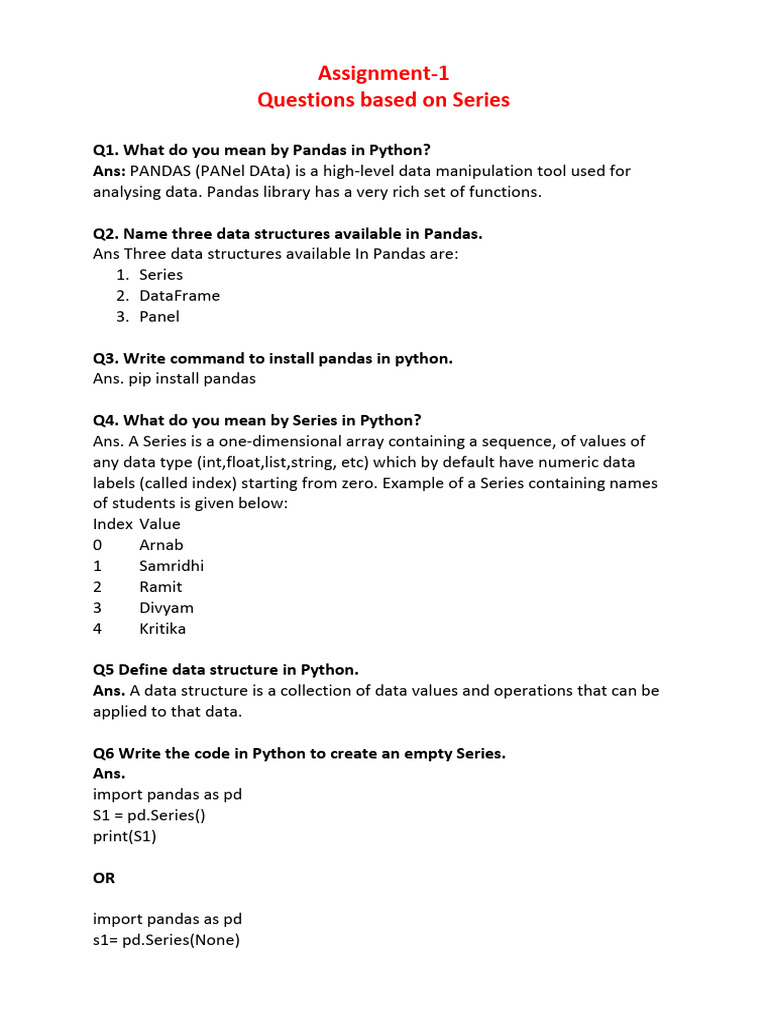 Pandas Series Basics in Python | PDF | Teaching Methods & Materials ...