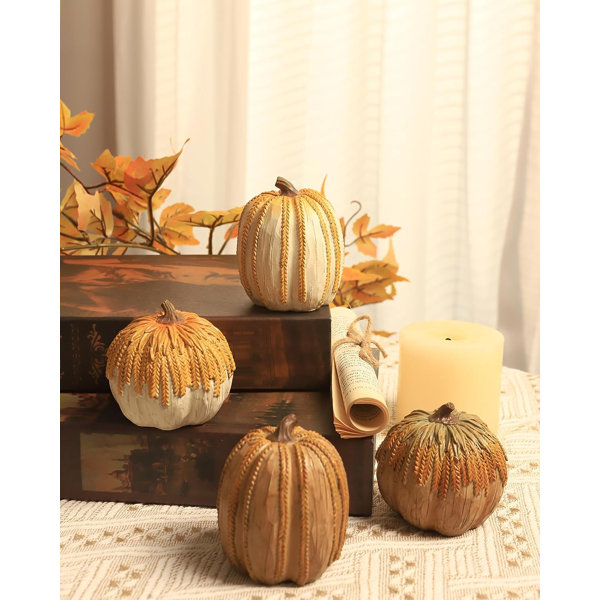 The Holiday Aisle® Resin Pumpkin Decor Set Of 4 With Wheat Design ...