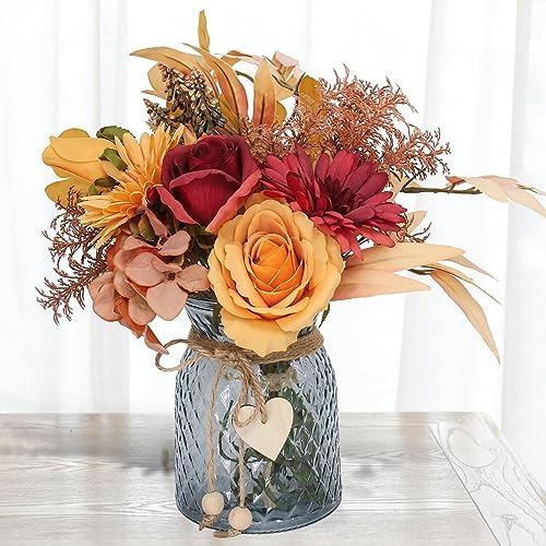 Amazon.com: LUEUR Artificial Faux Flowers in Vase for Home, Fake ...