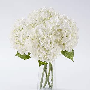 Amazon.com: BonBloom's 21" Real Touch White Hydrangea Artificial ...