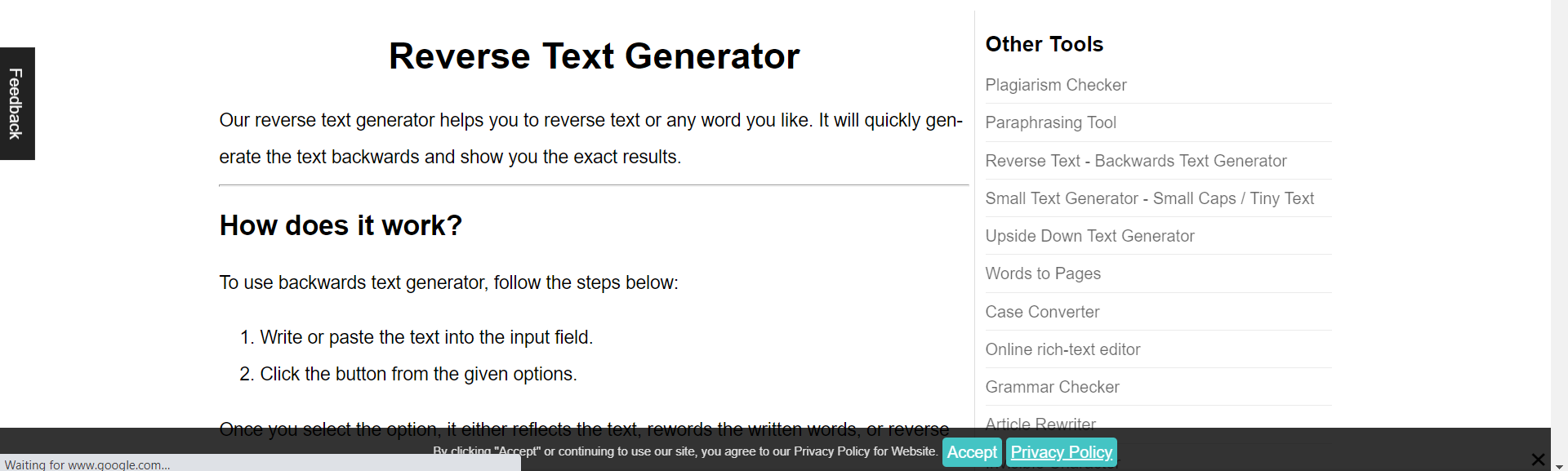 Reverse Text Generator - Backwards Text | Word Mirror | Flip Text