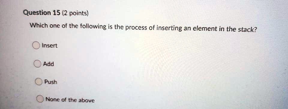 Solved Process of inserting an element in stack is called a. | Chegg.com