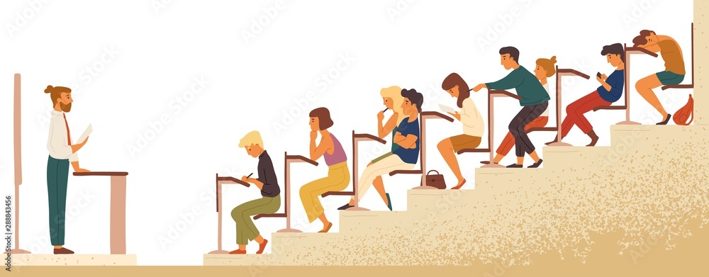 Premium Vector | Teacher gives a lecture to students in a university ...
