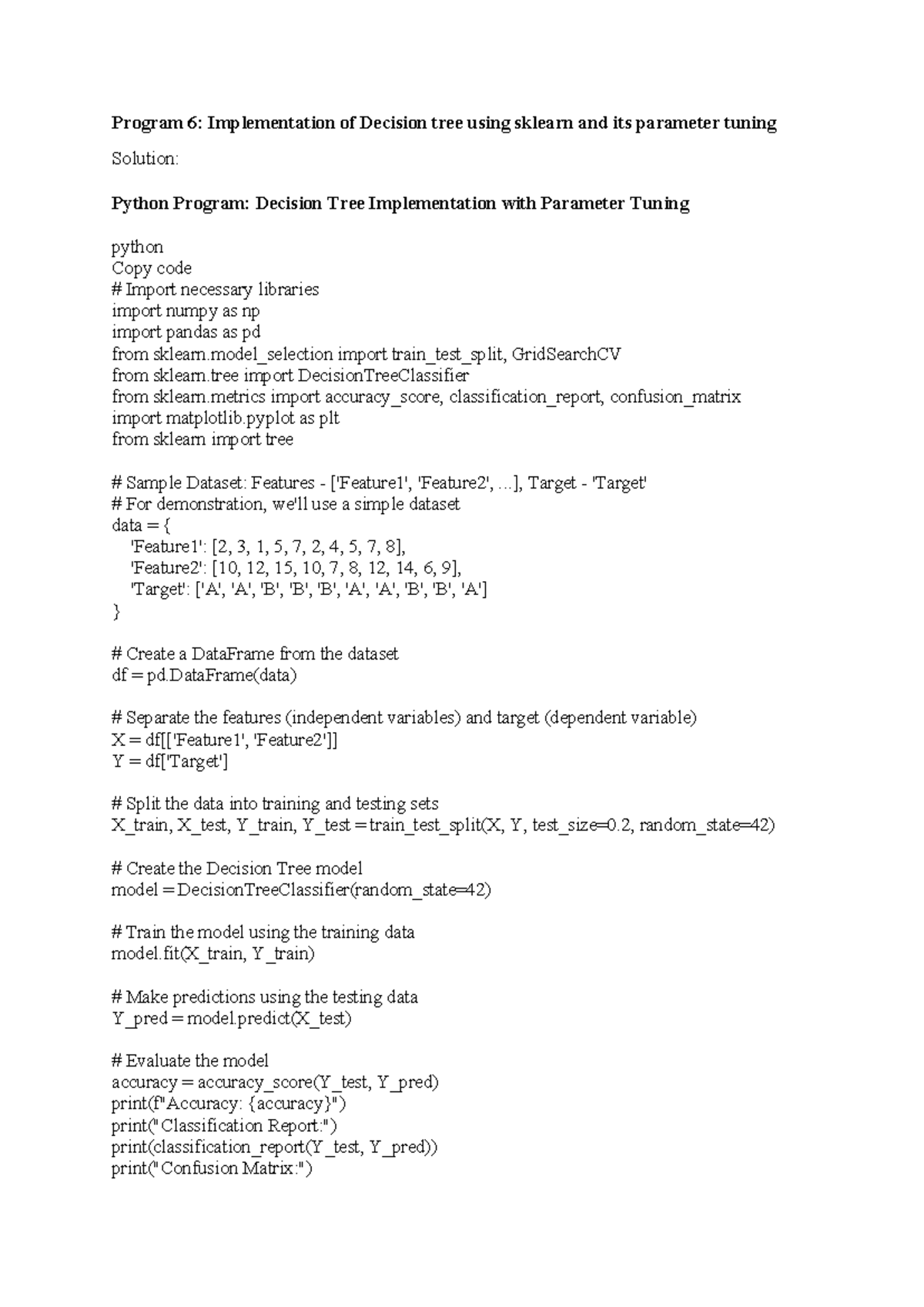 Implementation of Decision Tree in Python (CS101 Program 6) - Studocu